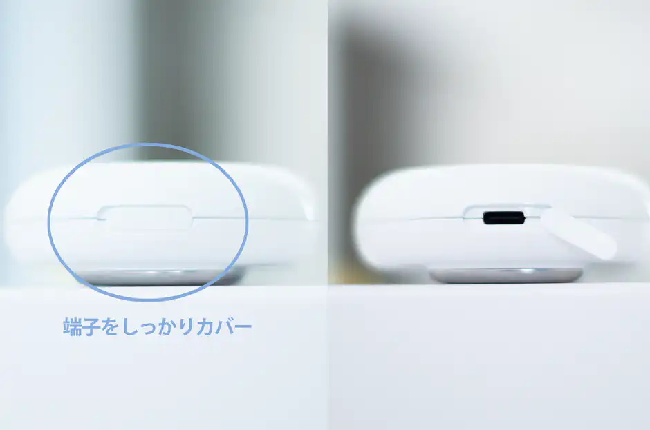本体をよく見てみて『これはいい!』と思ったのが、『ZIIP DOT』には充電端子にしっかりカバーが付いていること。